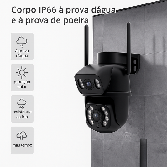 Câmera de Segurança Inteligente Wi-Fi 8MP com Dupla Lente, Visão 360°, IA e Áudio Bidirecional Cugo