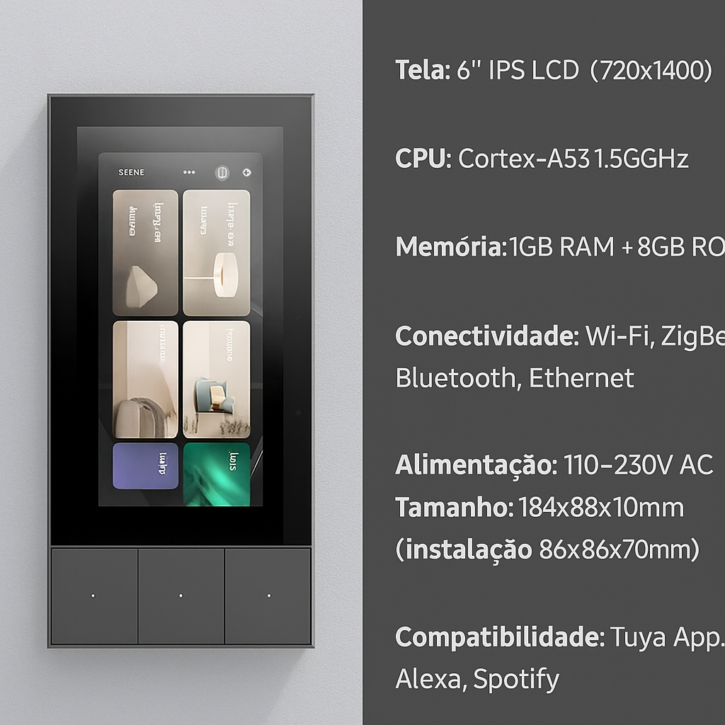 Painel Inteligente Touch 6” Tuya - Central Smart com Hub Zigbee e Alexa
