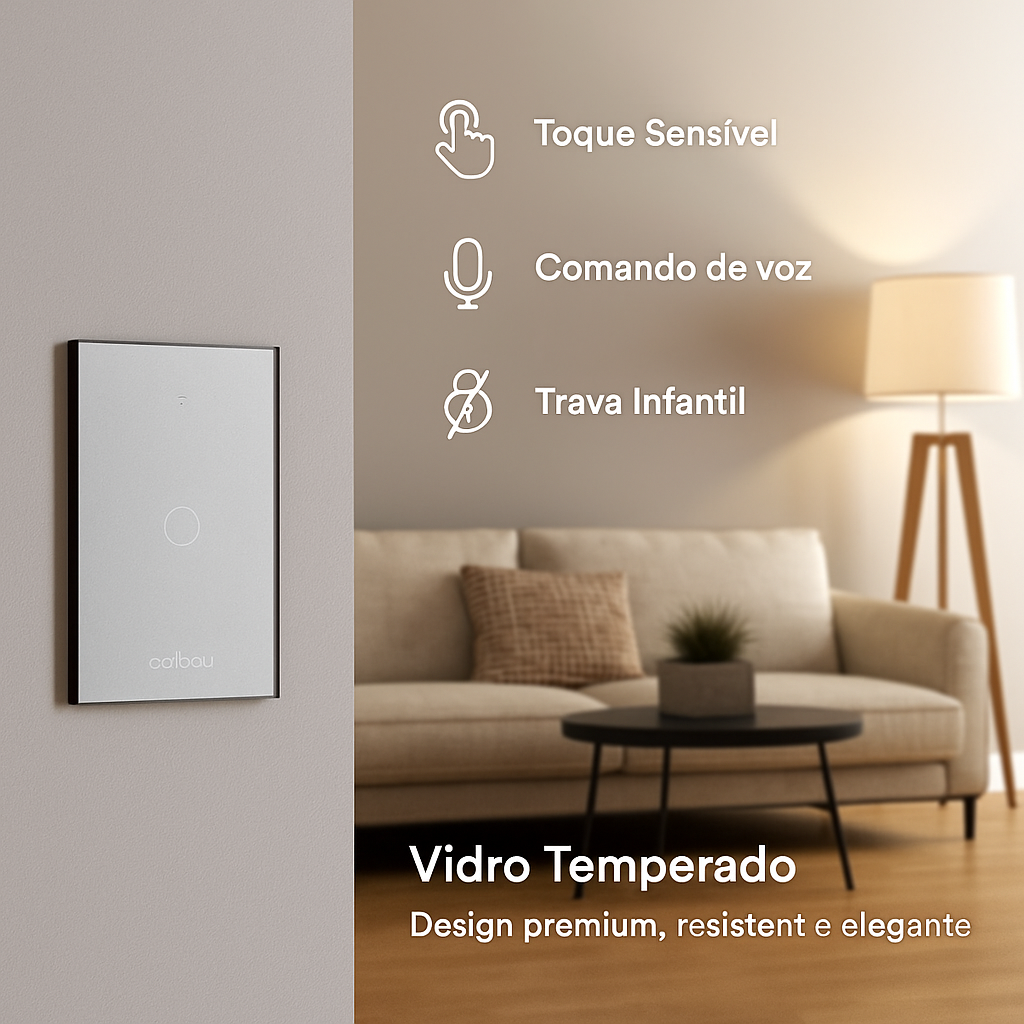 O Interruptor Touch Smart Caibeu é a solução perfeita para quem deseja unir tecnologia, funcionalidade e um toque de sofisticação no ambiente. Com design em vidro temperado, controle por toque, voz e aplicativo, ele ainda vem com tomada de 16A integrada e duas portas USB para carregar celulares e outros dispositivos direto na parede — sem bagunça de fios e carregadores.